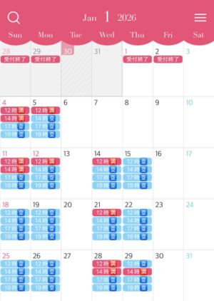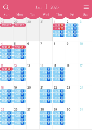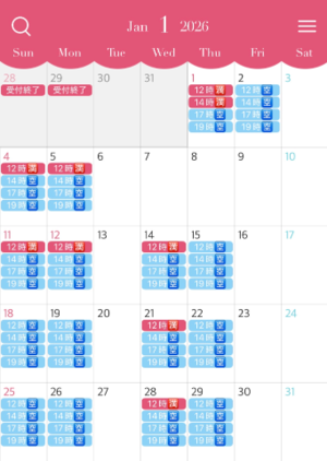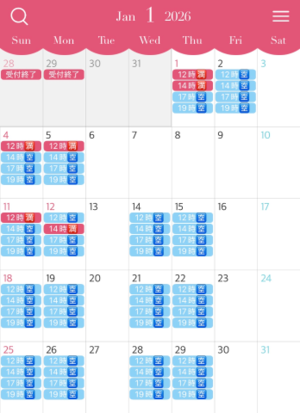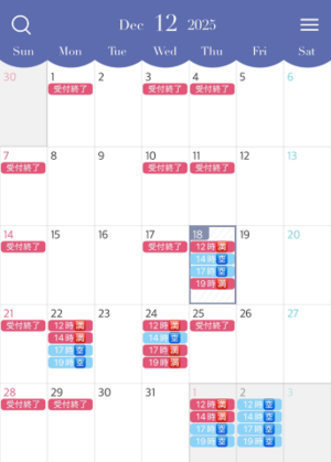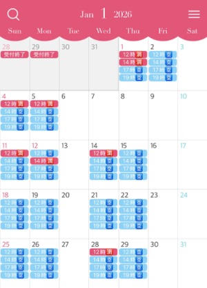 人気のお正月休み中の空き枠