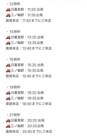 ?送迎の有無(日暮里駅or三ノ輪駅)
