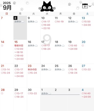 ということで9月スケジュールです?基本13:00-LASTで出ています???♀?