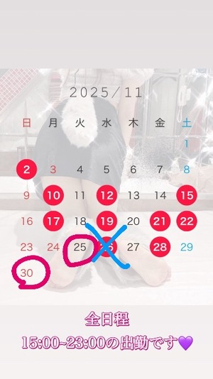 11/25 と 11/30が出勤日になりました??