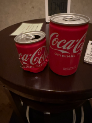 お部屋借りで頂いたコーラ缶(アルミ)をコンパクト缶にして、白藤感動しまくり。笑