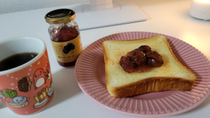 去年秋に白鳥麗子ちゃんに貰ったTAKANOのピオーネのジャムで朝ごはん