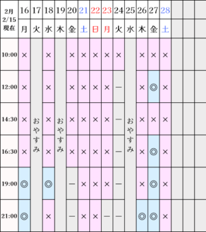 ?空き状況(2/15現在)