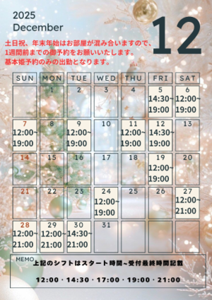 12月27日(土)12:00~14:00満