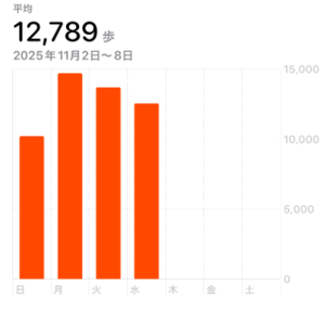 4日連続1万歩以上歩けました( ̄∇ ̄ノノ"パチパチパチ!!