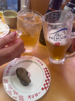 そして、久しぶりに帰り時間が一緒になった福留さんと某スシ〇ーでデート![]()