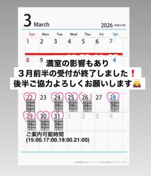 3月後半も少しずつ受付していくので、