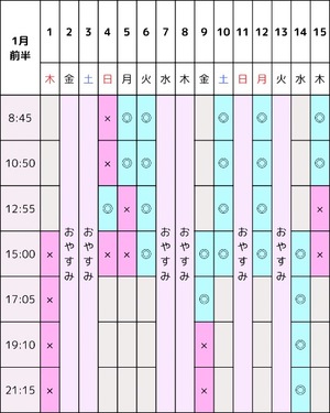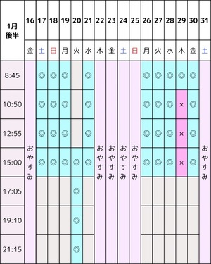今後の出勤予定??