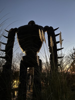 屋上にはロボット兵やトロッコ列車の線路、煉瓦に水を溜めたオブジェでラピュタの世界観が表されていて、月がで始めた時間帯にぴったりの景色でした。
