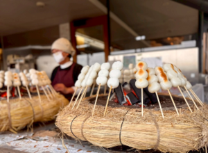 登りきった後の皆で食べるお団子は