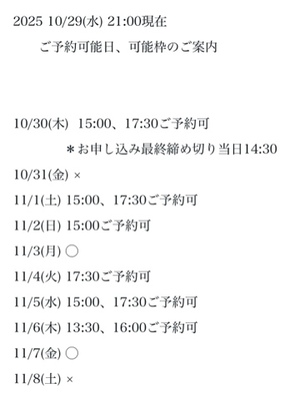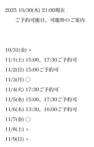 完全ご予約にて