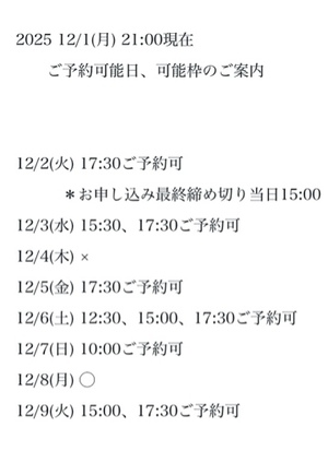 3枠6時間以上です♪(要ご相談)