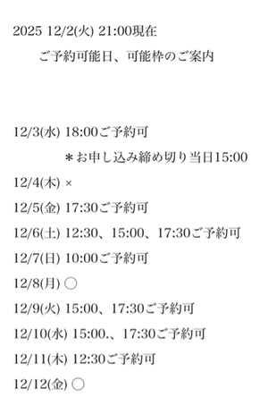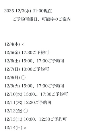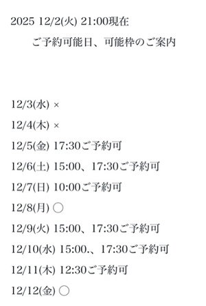 完全ご予約にて