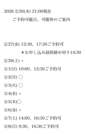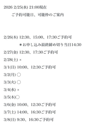 完全ご予約にて