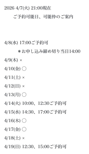 完全ご予約にて