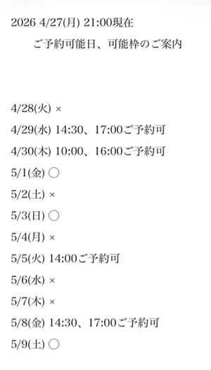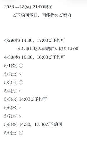 3枠6時間以上です♪(要ご相談)