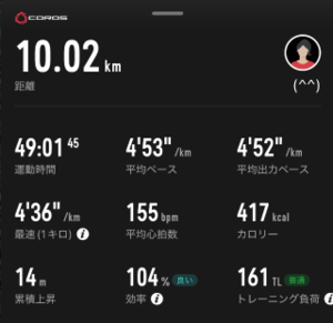 寒いのでスピード上げて10kmに変更