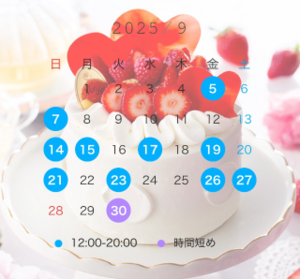 9月は残すところ30日(火) 12時のみとなっております。