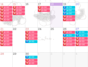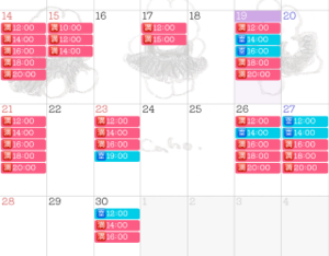 次回の出勤空き枠は30日(火) 12時のみとなっております。