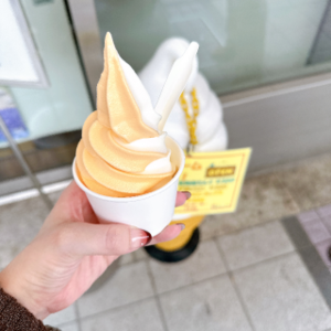 夕食のデザートに出てきたソフトクリームが