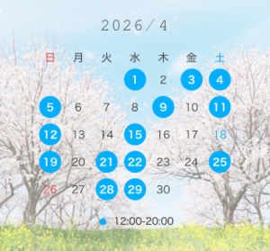 本日は口開け12時/14時が空いております。
