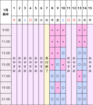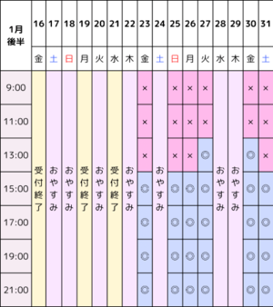 1月前半の空き枠になります!