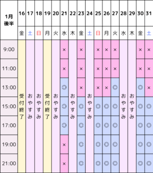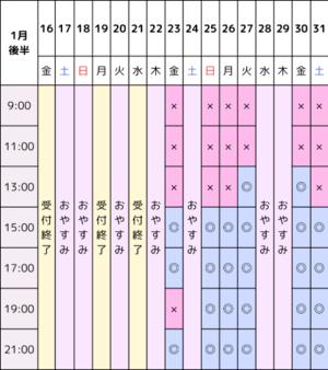 1月後半の空き枠になります!