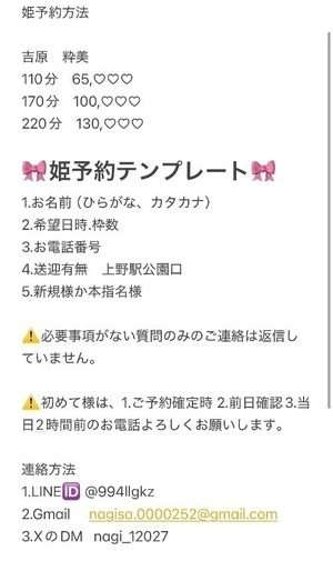🎀姫予約は、LINE、Gmail、XのDMからできます🎀