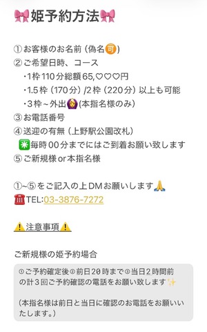 早めの姫予約お待ちしております