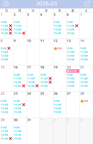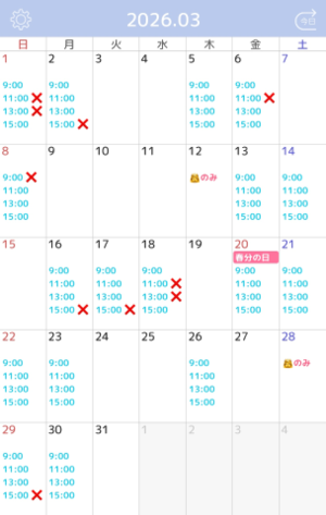 3月は通常通り出勤させていただきますので、下のスケジュールを見てくださると嬉しいです?