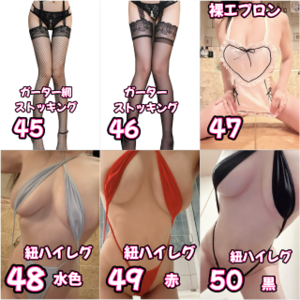 ?-5→お風呂プレイF2希望です。MットプレイはM1希望です。他にも、当日使う予定のない、ひも系や、布の面積が小さくて薄い系の衣装があったら見てみたいです!それと即A舐めもお願いできますか?