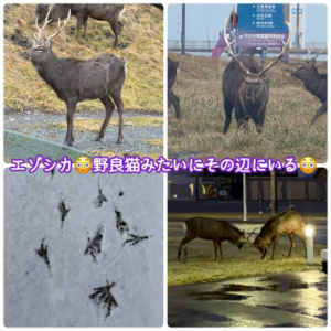 稚内にはエゾシカがそこらじゅうにウロウロしています??4枚目は駅前ですよ、、なんか足音するって振り返ったらエゾシカが目の前を通り過ぎていきました。。