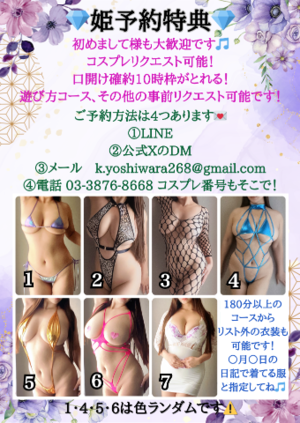 姫予約様は以下5項目をコピペして送ってね?お時間帯を第2希望までいただけると確定早いです