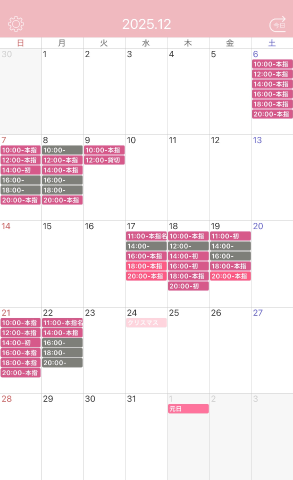 12月の出勤予定をあげて4日ほどで