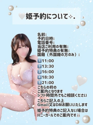 姫予約特典のご記入ない場合はバニーガールでのご案内です