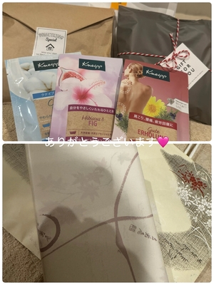 なかよし様からは、可愛い猫ちゃんのハンカチと入浴剤を⬛