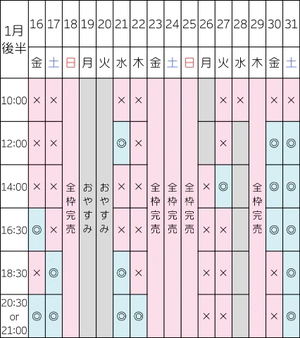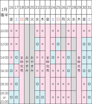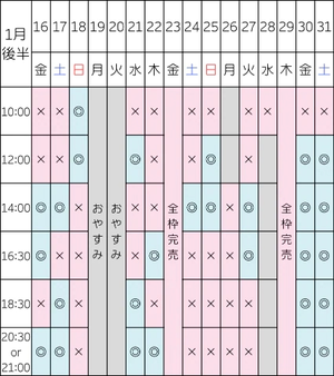 【1/13 14:00/16:30/18:30/20:30】