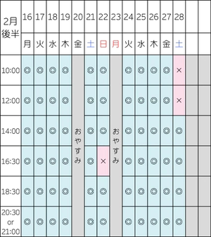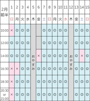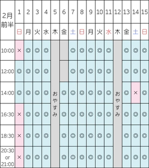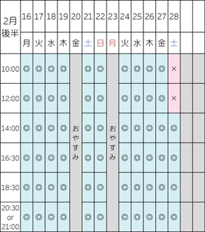 次回の空き枠はこちらです