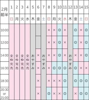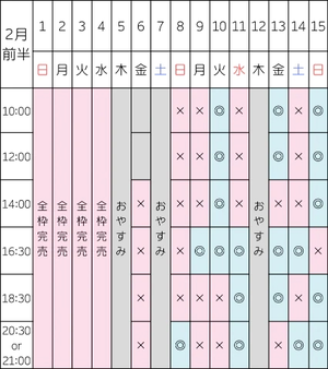 【2/11 14:00/16:30/20:30】