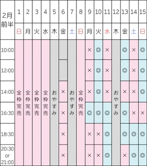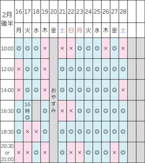 次回の空き枠はこちらです