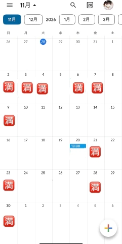 次回空き枠20日13:30〜/1枠のみ