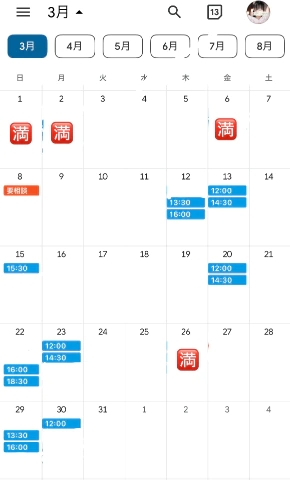 ⬇️直近の空き枠⬇️3月の空き枠