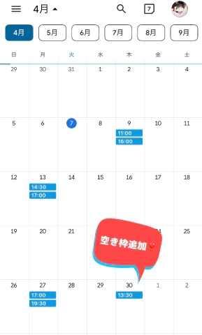 4月残り空き枠