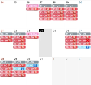 17日、24日、30日だけ10時〜の5枠受付になりますよ〜