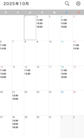 10月はリクエストがあった日時のみ