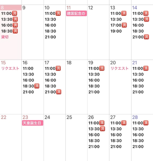 2月の予約状況&予定変更をお知らせします
