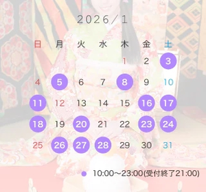紫の印が、私が在室しているお日にちでございます