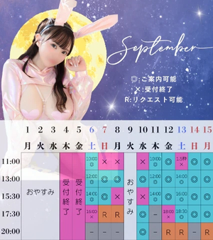 女の子の人数が多く、お部屋が埋まるのが早いので、お早めにご予約いただけるとすごく嬉しいです