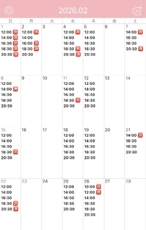 2月1日 14時/16時半/18時半/20時半