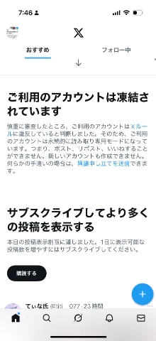 Xの方が凍結致しました…泣